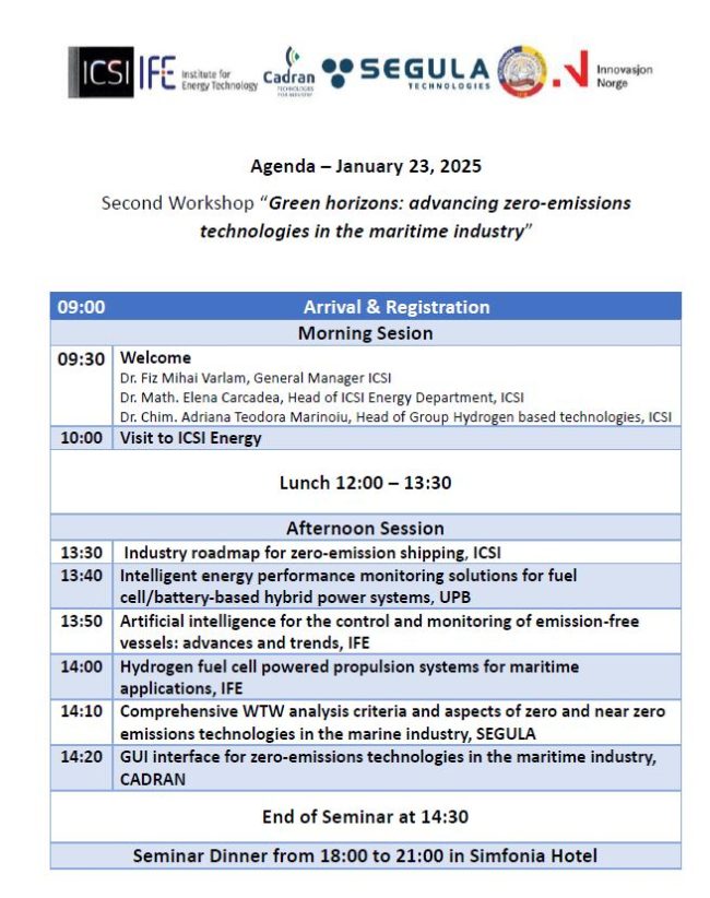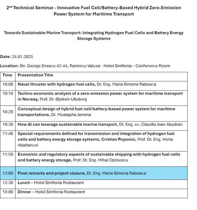 1st Technical Seminar – Advancements in Hybrid Zero-Emission Power Systems for Marine Transport: Design, Operation, and Characteristics Our next event organized within the framework of Activity 3: Training, capacity building and awareness-raising of the bilateral Norwegian-Romanian project “Innovative Fuel Cell/Battery-Based Hybrid Zero-Emission Power System for Maritime Transport”, which will take place at the Institute for Energy Technology in…